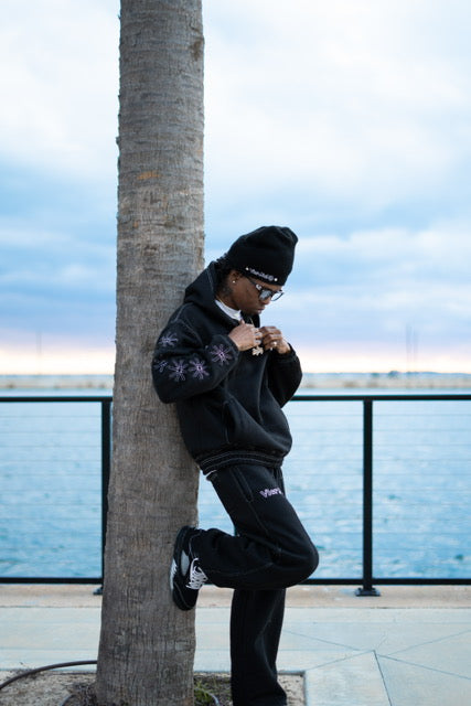 Vol. 3 sets are 100% cotton. Pullover hoodie paired with our relaxed fit sweatpants. Adjustable bottoms on sweats for the option of scrunch or loose fit. Sets fit TRUE TO SIZE. Model in product photos is 5’9 wearing a size small.